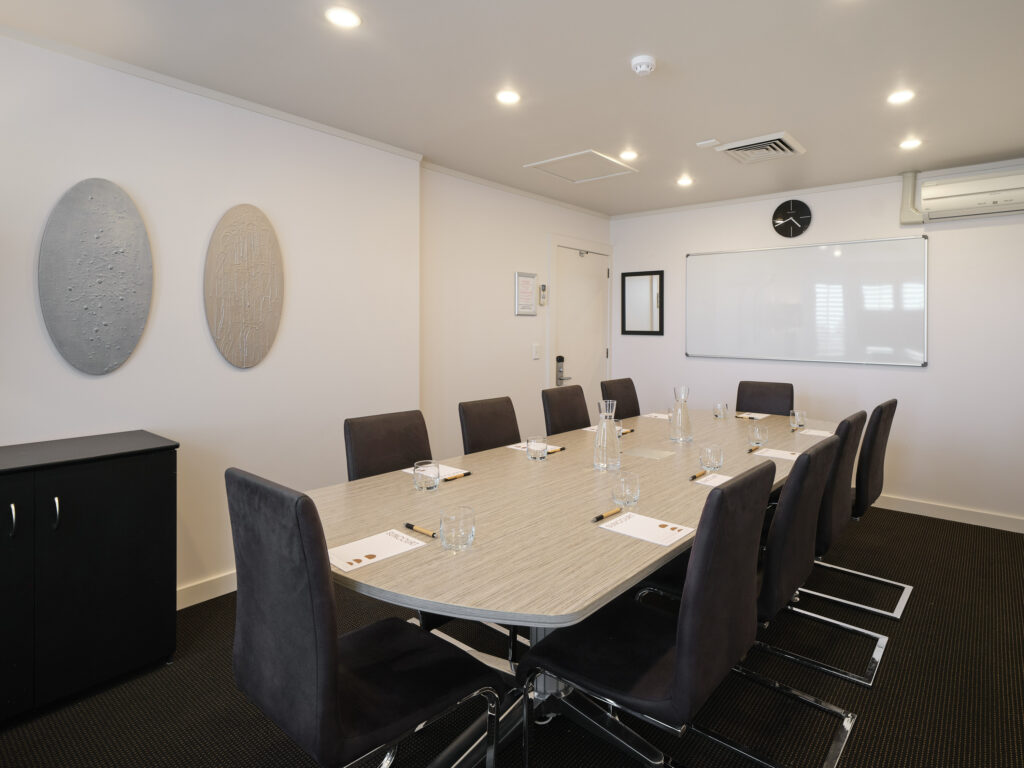 Nukuhau Boardroom is located on the ground floor just off reception. It boasts natural lighting and is a purpose built Boardroom suitable for up to 10 delegates. This meeting room is equipped with modern technology, this impressive-looking room lends itself to seminars and meetings. It has a floorspace of 24 metres squared that gives it a nice open feeling. We offer hourly & daily rates for this room that allows you to custom build your conference experience with us.