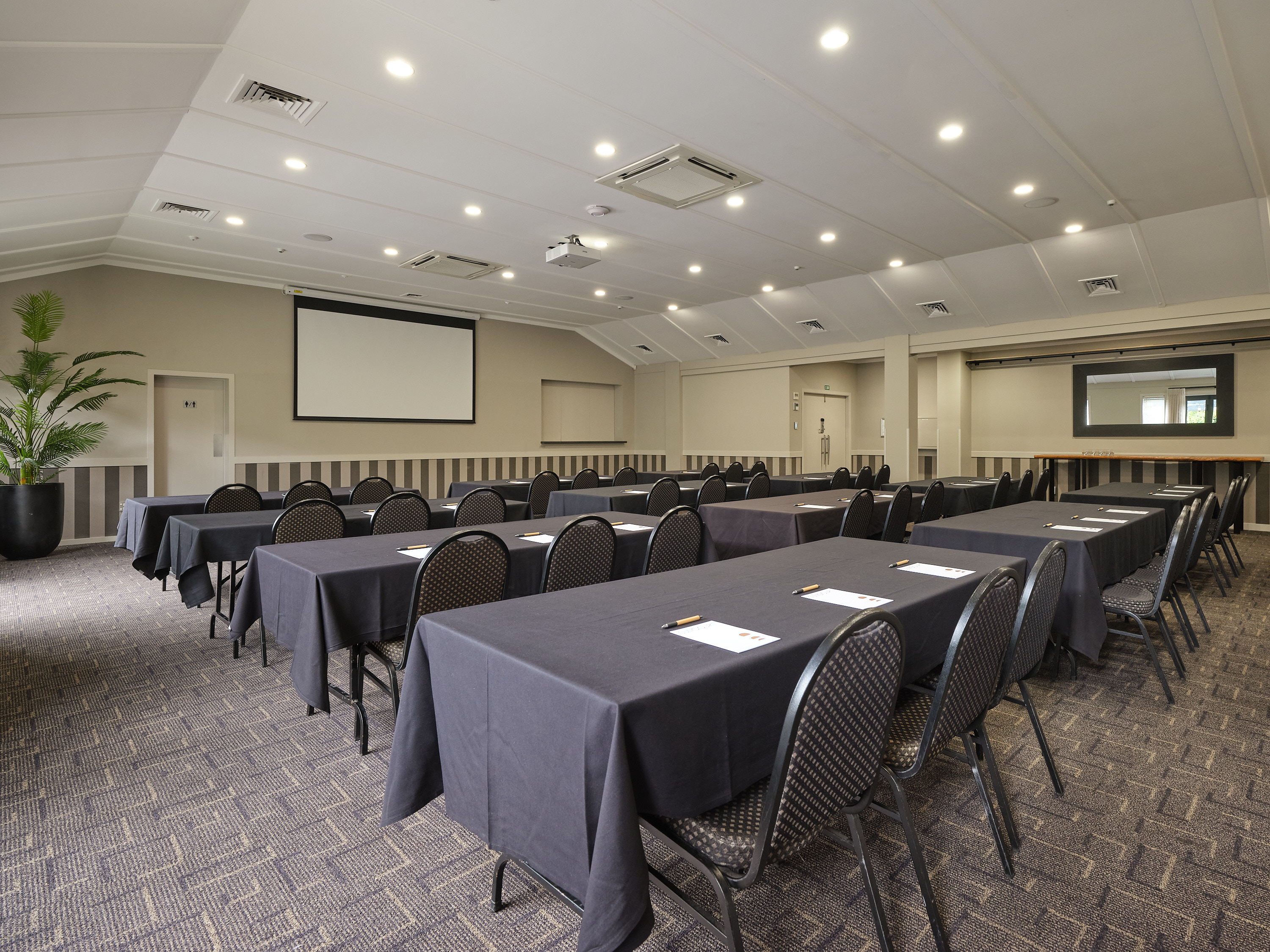 With natural light and indoor / outdoor flow to a covered courtyard area, Tauhara 2 seats up to 70 delegates theatre style. Tauhara 2 is our second largest conference room and has its own amenities and a function bar. The spacious conference room is located on the ground floor of the hotel in a private setting. This meeting room is equipped with the all the latest technology that allows you to have the optimum result and experience for your conference or event. This impressively looking room can be organised into many layouts to suit your needs.